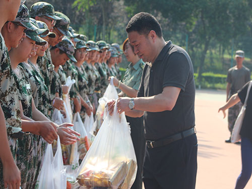 紧接着,在英皇娱乐场 党委副书记王聪老师的带领下,英皇娱乐场 2017级和2018级的同学给全体军训新生一一分发英皇娱乐场 精心准备的慰问物品,并向全体在训新生传达了英皇娱乐场 诚挚的关心与问候。王聪老师也鼓励全体参训新生,并殷切的希望大家在军训中能够磨练自己,为大学生活画上浓墨重彩的第一笔。