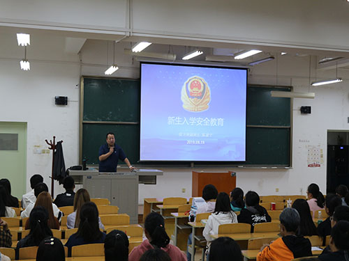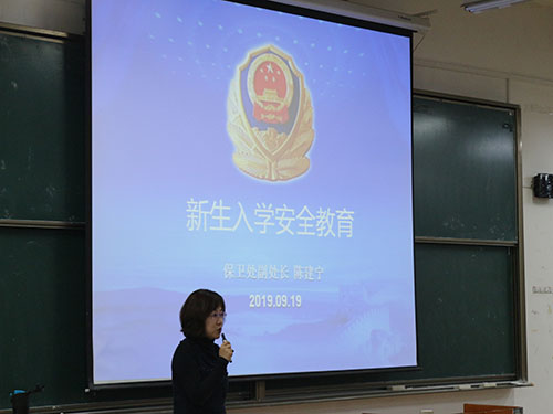 2019年9月19日晚19:30,英皇娱乐场 2019级新生入学安全教育大会在BJ21举行。大会由校保卫处副处长陈建宁老师主讲,秦音老师主持本次大会。