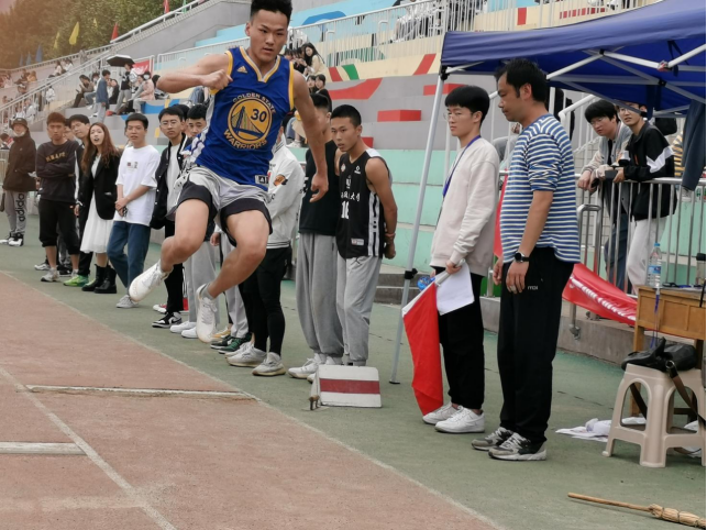 开幕式过后就开始了紧张刺激的比赛环节。短短的一个上午,就有同学取得了斐然的成绩。2020级张征以4.88米的成绩获得了男子组跳远第六名。2019级王星力以4.82米的成绩获得了男子组跳远第七名。2019级卜兆民以7.5米的成绩获得了男子组铅球第八名。