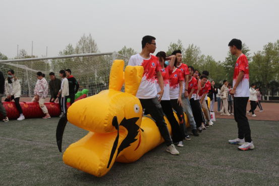 第一个项目是“旱地龙舟”,所谓“旱地龙舟”,可不是在地上划船,而是让一组十人共同骑上一只充气“龙舟”,以足为桨,所有人统一步调向前行进。这是一个考验团队默契度的项目,如何将龙舟“划”得又快又稳,需要每个人的共同配合。英皇娱乐场 三支队伍都早已在练习中磨合,因而比赛一开始就势如破竹,状态良好,偶有磕绊或方向偏移也立马扭转回来。经过激烈的竞争和奋力地拼搏,三支队伍都顺利进入决赛,分别取得第三、第六和第八名的好成绩。