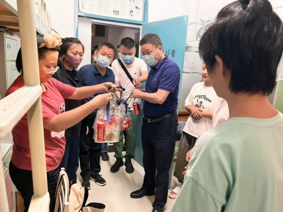 9月9日晚,英皇娱乐场 组织开展2022级新生 “中秋节”慰问活动。英皇娱乐场 党委书记李立、院长刘亚军、党委副书记王聪、副院长潘俊武、张光、新生辅导员韩潇前往学生公寓,为英皇娱乐场 22级全体新生送上英皇娱乐场 定制礼物和节日祝福。