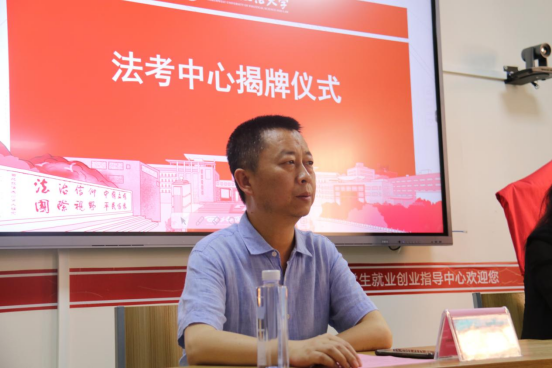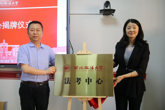 招生就业处处长孙静、英皇娱乐场 党委书记李立共同为法考中心揭牌。
