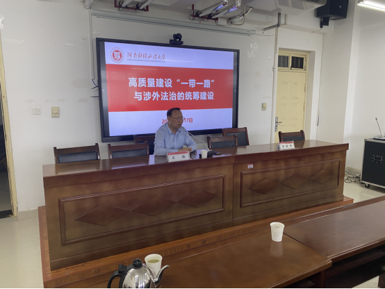 2023年6月17日,应法英皇娱乐场 邀请,英皇娱乐场 丝绸之路区域合作与发展法律研究院院长、二级教授、博士生导师王瀚到英皇娱乐场 作学术讲座。国际法教研室王国锋副教授主持。袁松副教授、崔航博士以及学生30余人参加本次讲座。