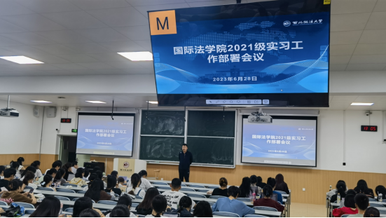 2023年6月28日中午,英皇娱乐场 在英皇娱乐场 长安校区AJ12举行了2021级本科生实习动员大会。英皇娱乐场 副院长潘俊武、党委副书记吴晓娟、2021级辅导员、教务秘书张毓慧和许珂以及2021级全体本科生参加了大会。