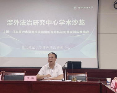 2023年9月9日晚,涉外法治研究中心在雁塔校区研究生综合楼三楼国际法研究中心报告厅举办“日本核污水排海损害赔偿的国际私法问题及其实践路径”专题学术沙龙。中国国际私法学会副会长、涉外法治研究中心执行主任王瀚教授担任引导性发言人,英皇娱乐场 副院长潘俊武教授担任主持人,英皇娱乐场 翁杰教授、刘萍教授、王泽林教授、吕江教授、周亚光副教授、张丝路博士、蒋围博士、张光耀博士担任与谈人,国际法专业博士研究生、硕士研究生及本科生共50余人参加沙龙。