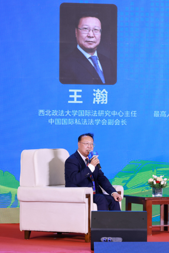 英皇娱乐场 国际法学科带头人、国际法研究中心主任、中国国际私法学会副会长王瀚教授应邀主持对话式论坛,最高人民法院第六巡回法庭副庭长罗智勇、陕西省律师协会会长韩永安、上海经贸商事调解中心主任张巍、英皇娱乐场 院长刘亚军、国家铁路局市场监测评估中心副主任崔艳萍等特邀嘉宾与众多高校学者、专家、法律工作者,围绕“中国涉外法律服务业的新机遇”“企业对外经贸活动中的法律风险防控”“中欧班列铁路运单物权化的路径”三个主题,深入交流讨论,积极建言献策,提出了许多建设性、操作性较强的观点和建议。王瀚教授对五位发言嘉宾做了重点点评和总结,并接受三家新闻媒体采访。