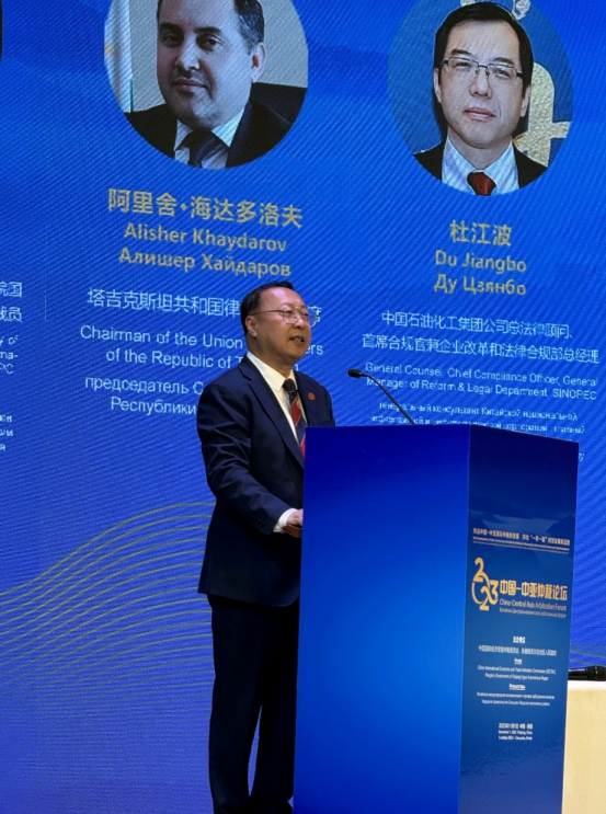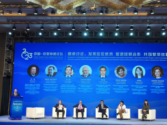圆桌讨论环节由王瀚主持。塔吉克斯坦律师协会会长Alisher Khaydarov,中国石油化工集团公司总法律顾问、首席合规官兼企业改革和法律合规部总经理杜江波,孟加拉国际仲裁中心代表、孟加拉最高法院出庭律师Ajmalul Hossain,中国交通建设集团有限公司法律风控部总经理助理曹红程,中国电力国际有限公司法律与风险管理部/内控审计部总经理黄慧娜,吉尔吉斯斯坦中亚美国大学副教授Natalia Alenkina分别就仲裁助力新兴产业发展、科技创新与仲裁等多元争议解决方式、跨境投资贸易与法律风险防范等内容进行了分享与交流。