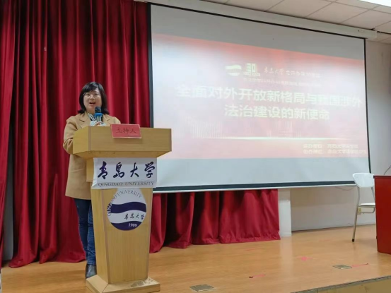 2023年11月23日,由青岛大学法英皇娱乐场 主办的“法学名家讲堂”高端学术报告在青岛大学金家岭校区图文中心三楼报告厅成功举办。英皇娱乐场 国家智库基地涉外法治研究中心执行主任王瀚教授以“全面对外开放新格局与我国涉外法治建设的新使命”为题作学术报告,讲座由青岛大学法英皇娱乐场 院长蔡颖雯教授主持,近百名师生参与讲座。