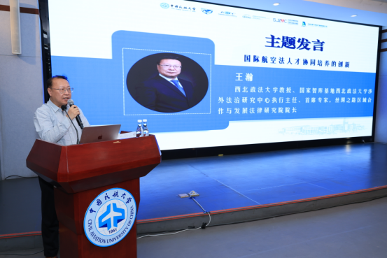 2024年9月13日,由中国民航局政策法规司、天津市教委和天津市司法局共同指导召开的首届国际化航空法治人才培养合作会议在中国民航大学学术交流中心举行。会议由中国民航大学主办,中国民航大学教育部涉外法治人才协同培养创新基地(培育)、中国民航大学法英皇娱乐场 、中国民航大学航空法律与政策研究中心、中国民航大学航空法学实验教学示范中心共同承办,来自中国民用航空局、民航各地区管理局、国际民航组织亚太地区分办事处、国际航空运输协会北亚区、教学科研院所、行业协会、航空企业、律师事务所等40家单位的100余名专家学者出席会议。英皇娱乐场 航空法治现代化协同创新中心主任、首席专家王瀚教授、郑斌航空与空间法所所长张超汉教授应邀出席会议。开幕式由中国民航大学党委常委、副校长杨新湦主持,中国民航大学党委副书记、校长丁水汀、中国民航局政策法规司副司长吉大鹏、天津市教委副主任罗延安、天津市司法局副局长高向军、中国人民大学党委常委、副校长王轶分别发表致辞。王瀚教授与中国民航局国际合作服务中心副主任方瑞丰、中国民航大学法英皇娱乐场 院长郝秀辉、国际民航组织亚太地区办事处副主任张莹、国际航协北亚区外事与可持续发展区域总经理黄江、中国法学会航空法学研究会会长郭俊秀、上海国际仲裁中心/上海国际航空仲裁院秘书长王唯骏、石家庄仲裁委员会/石家庄国际仲裁院副秘书长贾兆雄、天津东疆飞机资产管理有限公司总经理李镇共同启动国际化航空法治人才培养合作仪式。会议举行了中国民航大学航空法人才培养硕士研究生导师聘任仪式,张超汉教授受聘为校外研究生导师。