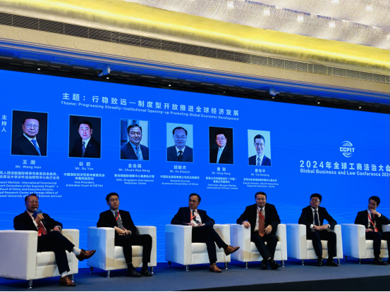 本次大会主题为“加强工商法治合作,推动世界经济发展”,分别围绕“合规建设和营商环境优化”“争议解决和全球经济共赢”“知识产权和新质生产力发展”议题同时举办法治与发展、法治与开放和法治与创新三场平行论坛。王瀚教授应邀出席法治与开放平行论坛。该论坛由中国国际贸易促进委员会主办,中国国际经济贸易仲裁委员会(“贸仲”)、国际商事争端预防与解决组织承办。中国国际贸易促进委员会副会长李庆霜、国际统一私法协会主席玛利亚·基娅·马拉古蒂发表致辞。二十余家来自不同国家及地区的国际组织和国际仲裁机构、中外方企业负责人及代表出席本次论坛。中国国际经济贸易仲裁委员会副主任兼秘书长王承杰主持开幕式。最高人民法院国际商事专家委员会专家委员、前亚洲开发银行驻中国代表处主任哈米德·谢里夫,亚洲国际仲裁中心主任拿督林添鑚,最高人民法院民事审判民四庭二级高级法官、国际商事法庭法官奚向阳,“一带一路”律师联盟秘书长康煜分别作主题发言。