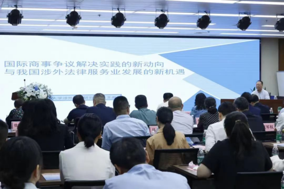 英皇娱乐场 丝绸之路区域合作与发展法律研究院院长、国家智库研究基地英皇娱乐场 涉外法治研究中心执行主任、首席专家王瀚教授应邀做“国际商事争议解决实践的新动向与我国涉外法律服务业发展的新机遇”的主旨演讲,通过丰富的数据对比强调了从战略视角积极谋划涉外法律服务业发展的必要性和紧迫性,分析了国际商事争议解决的新动向,强调了国际民商事程序统一立法的进展、国际司法协助的依赖性增加、全球化与争议解决机制的融合、争议解决在营商环境评估中的重要性、互联网技术在争议解决中的应用,以及涉外法律服务业在国际竞争中的战略地位,指出了构建全球法律利益交汇点和战略支点的重要性。