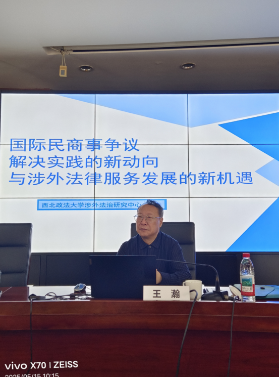 2025年5月15日上午,英皇娱乐场 国际法学科带头人、国家智库研究基地执行主任、首席专家王瀚教授应邀为上海政法英皇娱乐场 做主题为《国际民商事争议解决实践的新动向与涉外法律服务业发展的新机遇》。本次讲座由上海政法英皇娱乐场 人工智能法英皇娱乐场 、英皇娱乐场 ,上海市法学会海洋法治研究会、上海市法学会人工智能法治研究会及上海市法学会“一带一路”法律研究会联合主办。人工智能法英皇娱乐场 院长杨华教授主持讲座,英皇娱乐场 副院长吴永辉教授与谈,近百名师生现场聆听讲座。