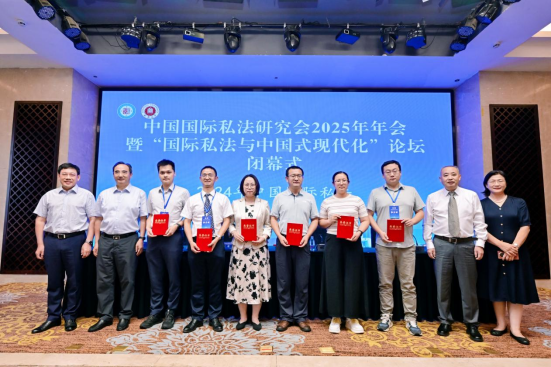 年会闭幕式环节举行了“2024 年中国国际私法优秀学术成果奖”颁奖仪式。张超汉教授、张丝路博士荣获中国国际私法优秀学术成果二等奖;博士研究生贾乔荣获费宗祎青年国际私法学者优秀科研成果二等奖。