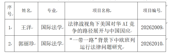 王洋,2023级国际法学专业硕士研究生,指导老师:张超汉教授,论文题目:《法律战视角下美国对华AI竞争的路径展开与中国因应》。