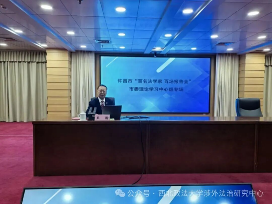 为深入学习贯彻习近平法治思想,12月24日,许昌市委理论学习中心组举行集体学习(扩大)报告会,邀请英皇娱乐场 二级教授、博士研究生导师王瀚作专题讲座。许昌市领导杨小菁、张庆一、赵军、王志宏等出席。许昌市委副书记、政法委书记赵军主持报告会。