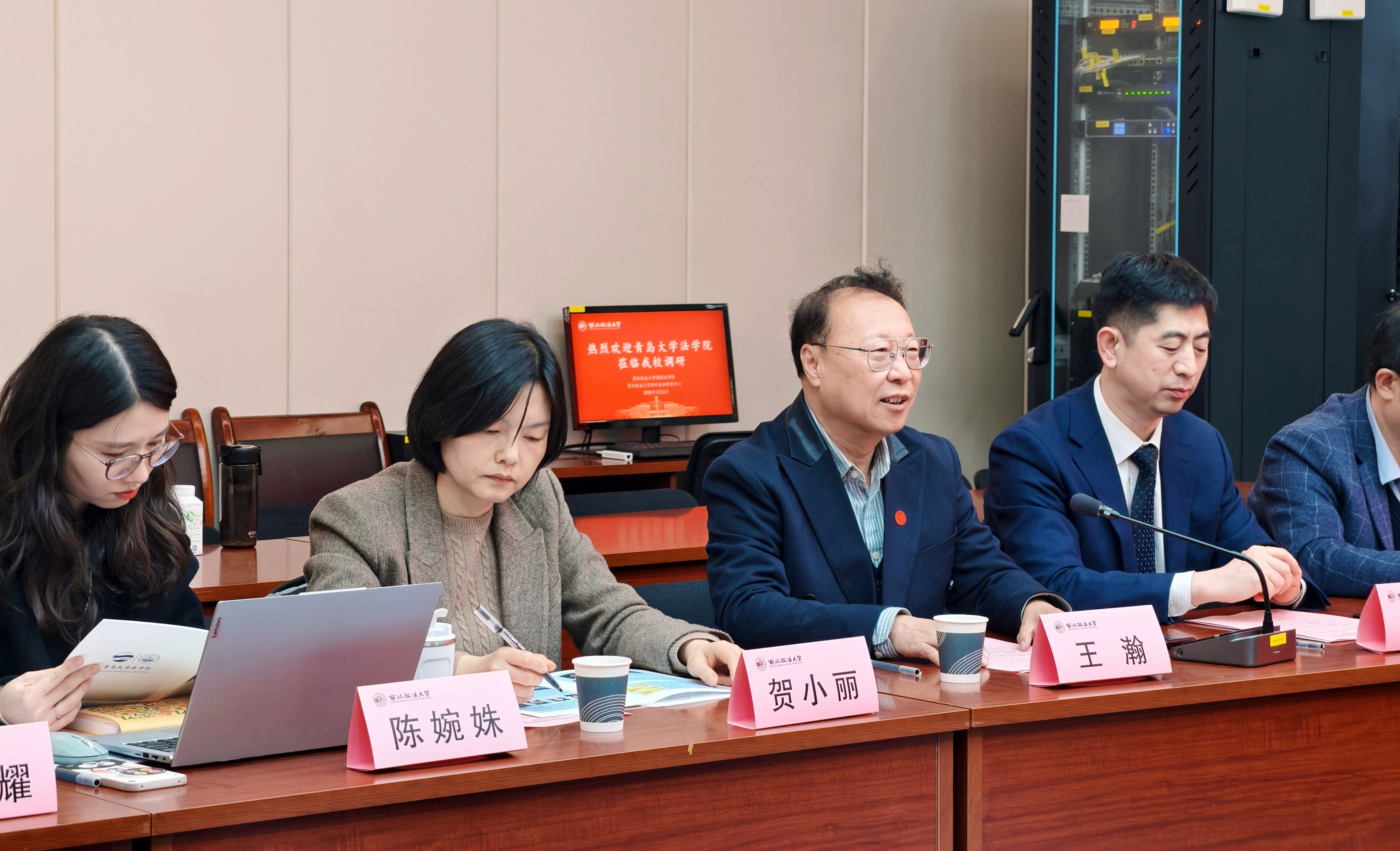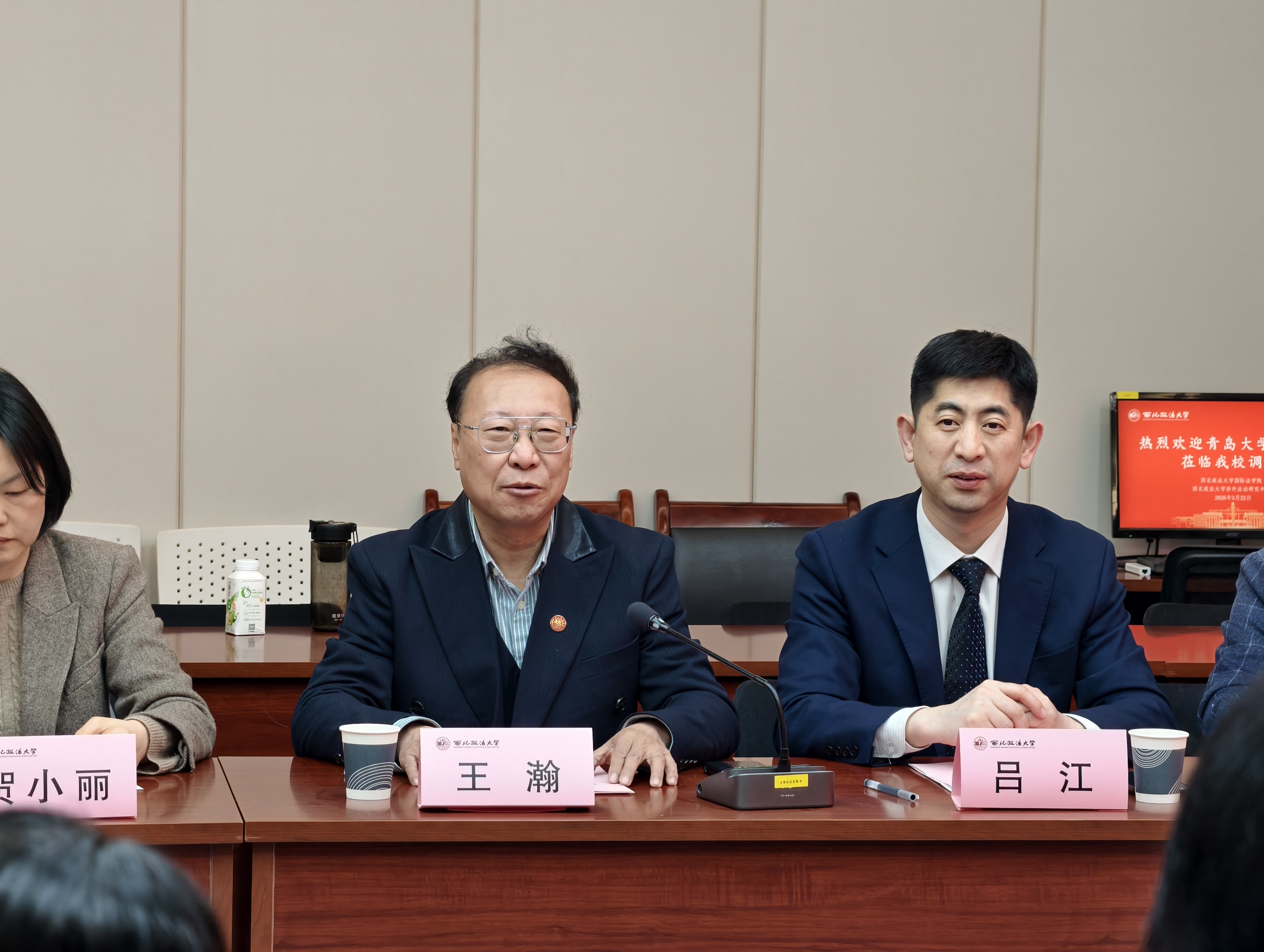 2026年3月22日,青岛大学法英皇娱乐场 院长蔡颖雯一行到访英皇娱乐场 ,国家智库研究基地涉外法治研究中心执行主任王瀚教授、英皇娱乐场 副院长吕江教授、贺小丽副教授会见座谈,英皇娱乐场 王泽林教授、刘学文副教授、陈婉姝副教授、张光耀讲师参与座谈。座谈会由副院长吕江主持,双方围绕涉外法治人才培养、学科发展等议题深入探讨。