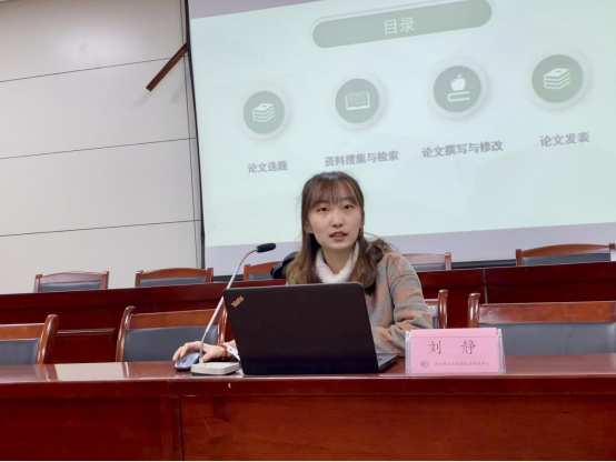 刘静首先向大家介绍了自己发表论文的经历以及在此过程中的辛勤付出与心路历程,提醒大家在研究生阶段,读书学习与论文写作之间是相辅相成、互相促进的关系,告诫大家切勿好高骛远,一定要在多读书的基础上寻找兴趣点并逐步确立研究方向。随后,她从四个方面与大家分享了自己的成功经验:第一,论文选题。她指出,一个好的选题,必须具有可行性、创新性和研究价值。她指出,一个好的论文题目必须要有问题意识和目的性,符合自己的研究方向,并关注热点与时事政治、与导师即时沟通。第二,资料搜集与检索。刘静结合自己论文写作的经验,为大家推荐了一些常用数据库,如中国知网、台湾地区学术文献数据库、Westlaw等,并详细介绍了搜索方法和技巧。第三,论文撰写与修改。刘静从宏观和微观两个不同层面分别介绍了论文写作的具体方法与常见错误的规避问题,并分享了一些修改工具与心得。第四,论文发表。她建议大家关注期刊投稿网址和各法学会举办的论坛信息,并积极参加各种论文征稿比赛。
