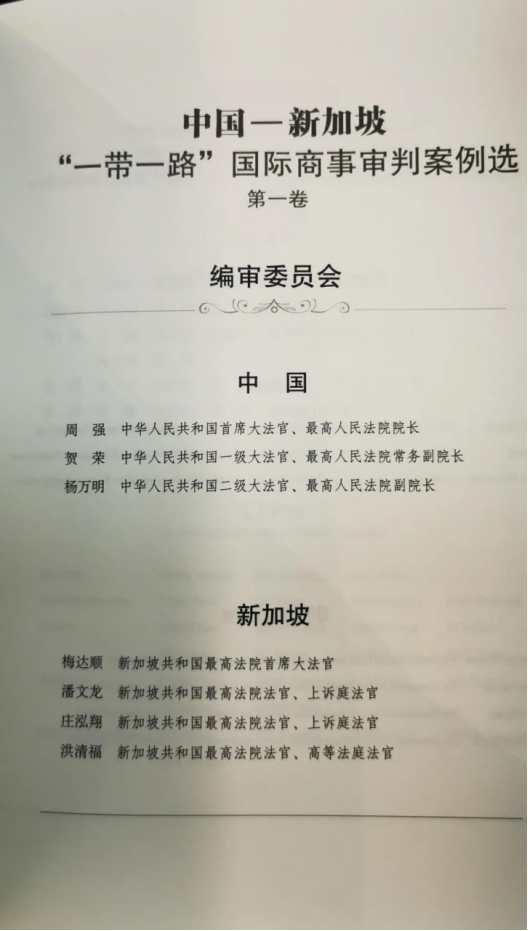 近日,由中华人民共和国最高人民法院和新加坡共和国最高法院联合主编的《中国—新加坡“一带一路”国际商事审判案例选》第一卷和第二卷已由法律出版社出版,是两国开展一带一路建设司法合作的重要成果,该案例丛书由两国最高法院分别吸收本国知名专家学者组成编辑委员会,对一带一路司法实践中的经典国际商事审判案例进行点评和学理评述,为提升国际商事审判司法实践水平提供重要理论支持。英皇娱乐场 国际法研究中心主任、中国国际私法学会副会长王瀚教授受聘该案例丛书(中国)编辑委员会专家参与案例评述和编辑工作。