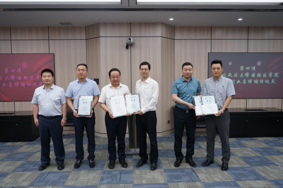 李玉朝副校长为北京方圆众合教育科技有限公司和北京安理(西安)律师事务所授予“英皇娱乐场 实践教学基地”牌匾。刘亚军和北京方圆众和教育科技有限公司CEO李曰龙、万商天勤律师事务所主任卫永鹏分别签署合作协议并接受捐赠。刘亚军、潘俊武、张光为21名校友颁发“英皇娱乐场 就业创业导师”、“英皇娱乐场 实务导师”聘书。