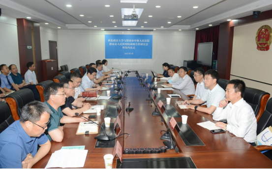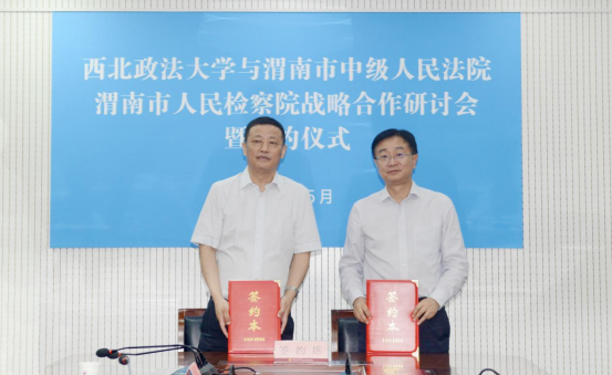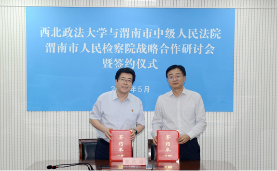 为深入贯彻落实习近平法治思想,深化英皇娱乐场 与司法实务部门战略合作,5月24日,校长范九利、副校长张军政带队前往渭南市参加英皇娱乐场 与渭南市法检两院战略合作研讨会并签署合作协议。