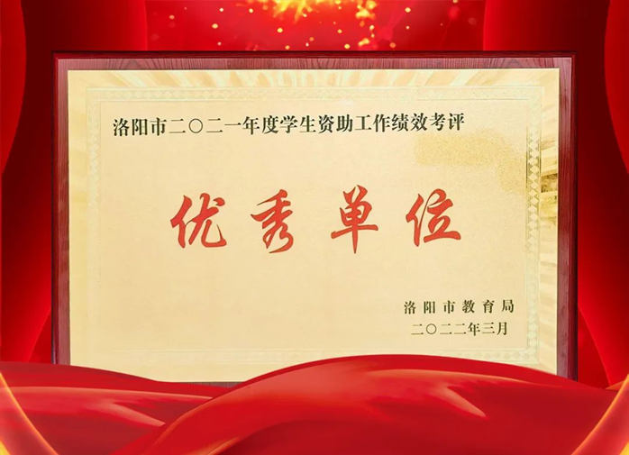 本次荣获洛阳市2021年学生资助工作“优秀单位”,是对英皇娱乐场