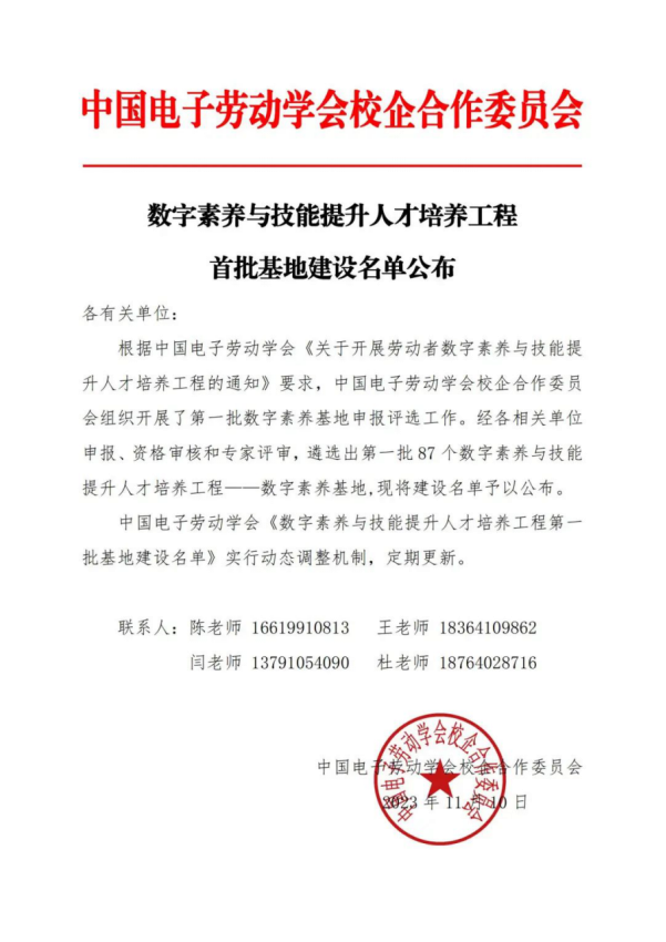 入选第一批87个数字素养与技能提升人才培养工程——数字素养基地建设名单。这一成就标志着英皇娱乐场