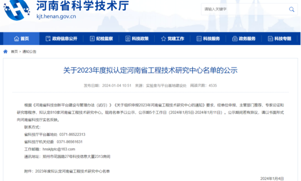 近日,河南省科学技术厅发布了《关于2023年度拟认定河南省工程技术研究中心名单的公示》,由洛阳科技职业英皇娱乐场