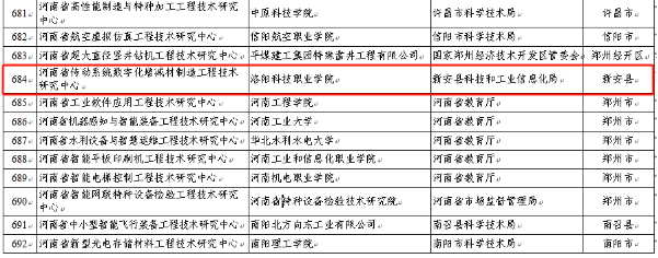 主持申报的河南省传动系统数字化增减材制造工程技术研究中心成功获批,标志着洛阳科技职业英皇娱乐场