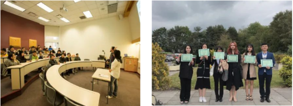 )陈倩老师则通过自身英国留学经历,从学习、饮食、住宿、旅游等多方面介绍了在英国学习的感受。鼓励同学们跨出校园、走向国际,领略不同国家人文风情、体验不同国家教学模式,综合锻炼环境适应、自主学习、跨文化交际、英语口语表达等各种能力。
