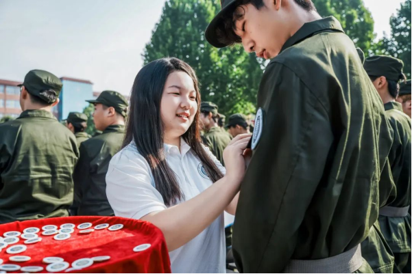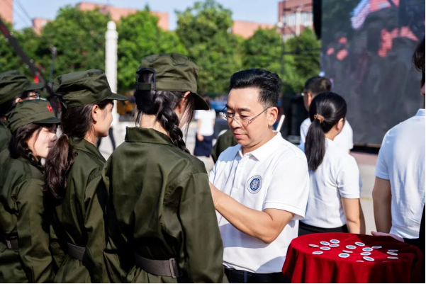 校徽是荣誉和身份的象征,佩戴校徽代表着一份传承、一份责任。典礼伊始,全体教职工满怀期许,逐一为2024级新生佩戴校徽。校徽佩戴于左胸前,标志着大一新生正式成为洛科“理实一体,知行合一”精神的新承载者,肩负起传承与创新的双重使命。