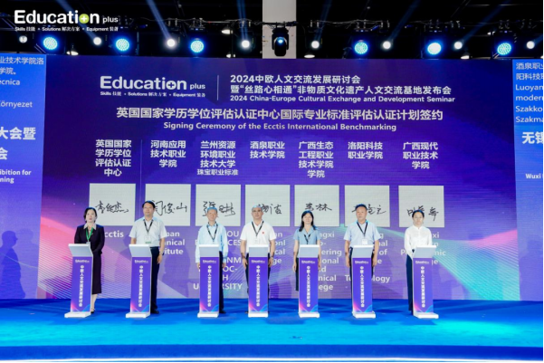 与英国国家学历评估认证中心完成了国际专业标准评估认证的签约仪式。会议聚焦“国际标准共建、助力职教出海”进行深度研讨,探索如何通过“标准共建,融汇中西”的模式,利用国际通用的话语体系打造具有中国特色且与国际接轨的职业教育标准,融合国际先进教育理念与中国职业教育特色,构建既体现中国元素又符合国际通行规则的职业教育标准体系。
