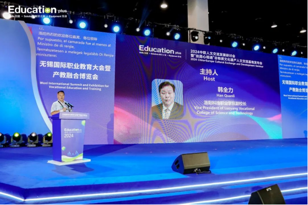 院长宋启祥、智能控制工程系主任王艳艳、数智技术系大数据教研室主任邢梦颖等老师应邀参加了2024 EducationPlus第八届(无锡)国际职业教育大会暨产教融合博览会——中欧人文交流发展研讨会暨“丝路心相通”非物质文化遗产人文交流基地发布会。