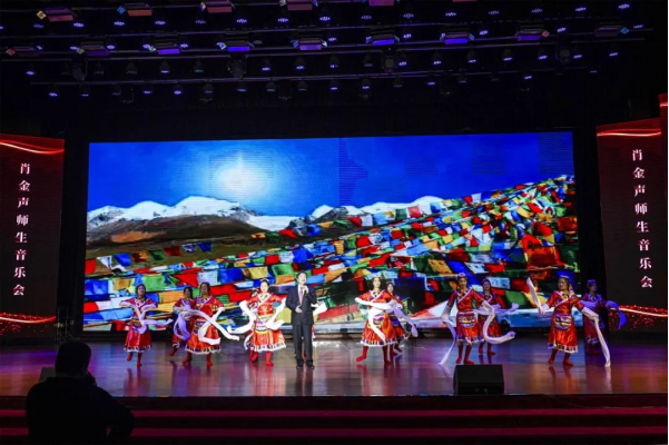 在音乐会的高潮部分,肖金声老师深情地演唱了歌曲《回母校》。歌曲不仅表达了他对母校的深厚感情,更引起了现场学生对校园生活的美好共鸣。此外,《梦中的卓玛》《可爱的一朵玫瑰花》等经典民歌,展现了中华民族丰富多彩的文化底蕴和深厚的民族情感,让在场的观众领略到了民族音乐的独特魅力。