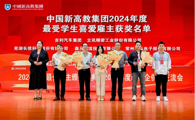 吉利汽车集团、立讯精密工业股份有限公司、芜湖长信科技股份有限公司、森马嘉兴物流投资有限公司、常州澳弘电子股份有限公司获评“中国新高教集团2024年度最受学生喜爱雇主”。