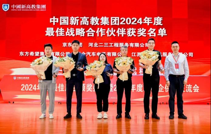北京京东世纪贸易有限公司、河北二三工程服务有限公司、东方希望集团有限公司、联合汽车电子有限公司太仓分公司、江苏顺丰通讯服务有限公司获评“中国新高教集团2024年度最佳战略合作伙伴”。