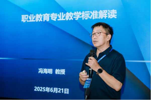 为例,分享了在对接国家标准、优化专业人才培养方案方面的创新思路、典型做法及成功经验。他就如何深化校企合作,将行业前沿技术、最新标准和真实需求有机融入人才培养全过程,有效提升人才培养的针对性和适应性,发表了深刻的见解。