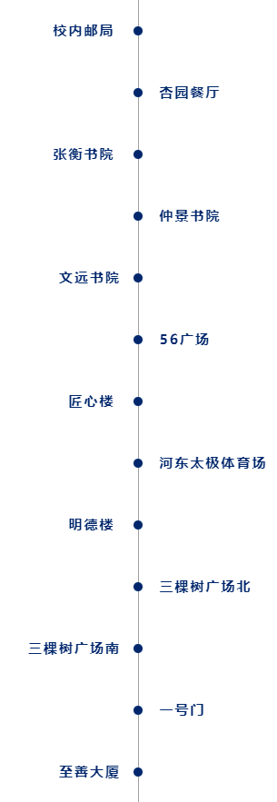 观光车将在上述站点停靠,站点之间不再停车。请同学们认准站牌,在站牌处等候上车!