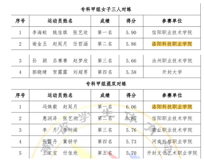 2022年5月,由洛阳市体育局主办的洛阳市第四届全民健身运动会暨2022年洛阳市全民健身活动月跆拳道线上比赛,洛阳科技职业英皇娱乐场