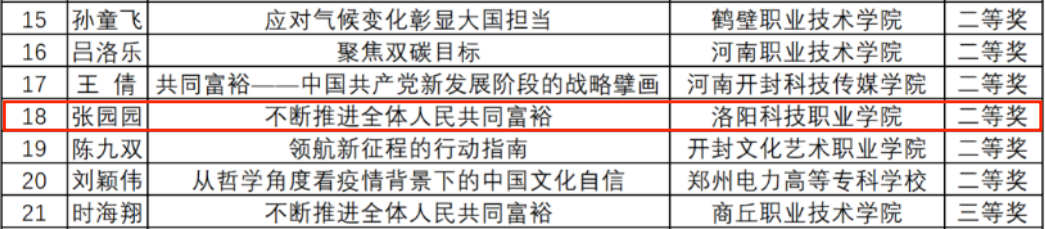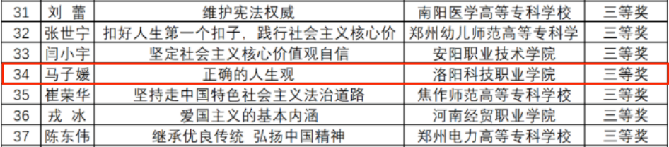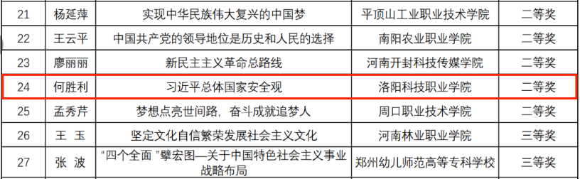 何胜利、张园园、马子媛三位老师的作品《习近平总体国家安全观》《不断推进全体人民共同富裕》《正确的人生观》获得河南省二等奖两项、河南省三等奖一项的优秀成绩。
