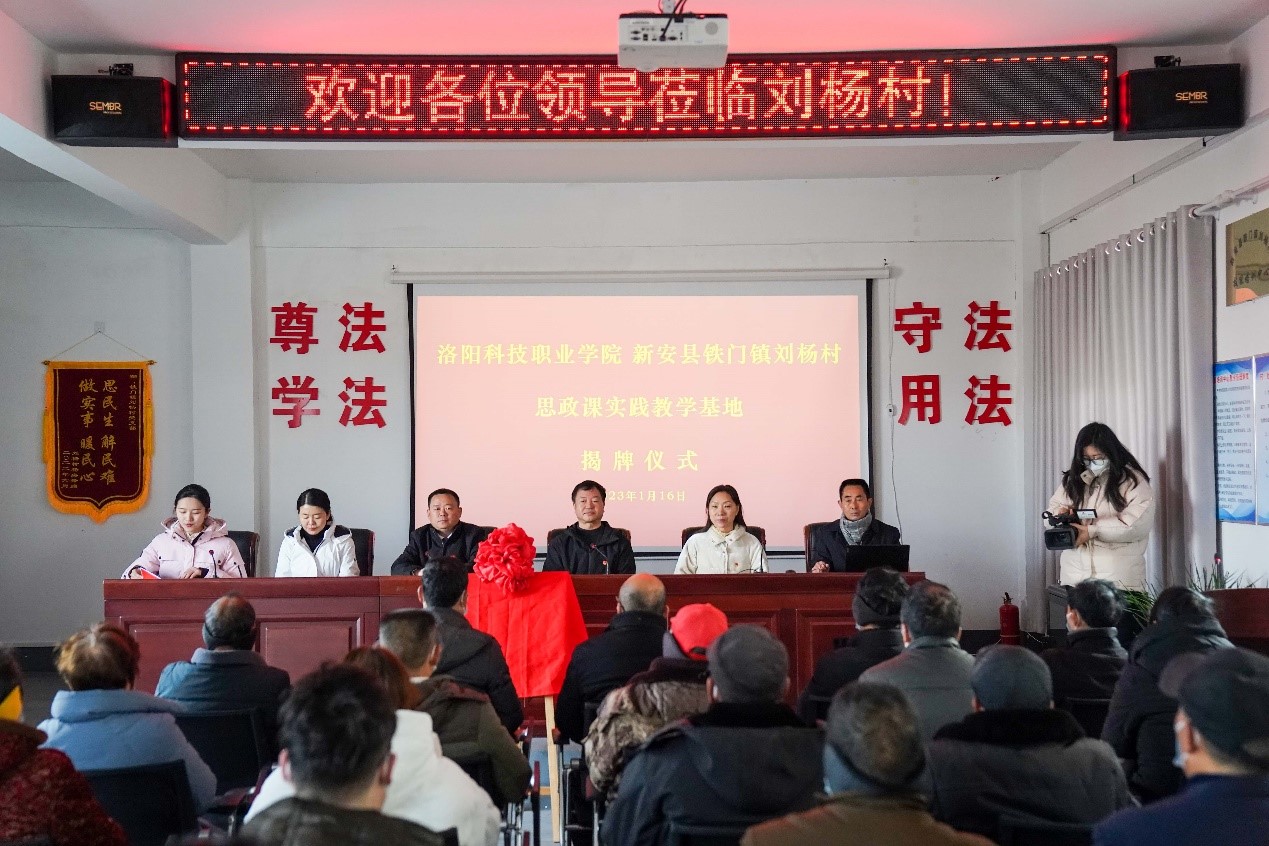 党总支书记、院长刘琳娜,副院长郁少娇、党总支副书记李得福,思政教研室主任岳留洋;同中共新安县委新安县党校党委书记、副校长王国营,党委委员、副校长韩玉辉,新安县铁门镇刘杨村党支部书记陈军委、铁门镇人大主席裴琳琳等参加仪式,仪式由书记助理王禹锦主持。