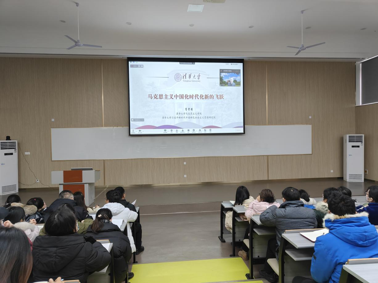 2月9日,马克思主义英皇娱乐场 组织开展思政专题讲座。本次活动采用线上线下相结合方式,邀请清华大学教授、博士生导师肖贵清担任主讲嘉宾,校党委书记刘茂钦主持活动。马克思主义英皇娱乐场 全体教职工在格物楼305参加此次讲座。
