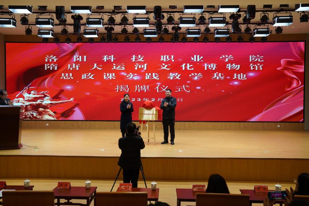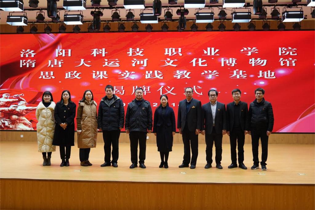 为开展馆校共建新模式,充分发挥文化博物馆的社会教育职能,为馆校共建提供良好的合作育人平台,探索校外“大思政”课堂实践的深度和广度,2月14日,洛阳科技职业英皇娱乐场 与隋唐大运河文化博物馆签订思政课实践教学基地合作协议,并举行揭牌仪式。