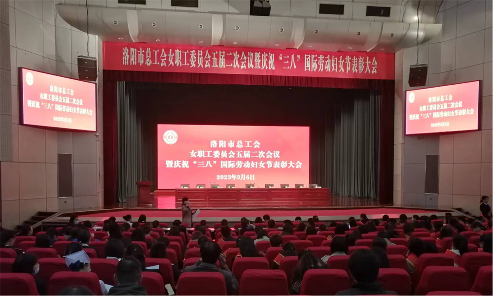 近日,洛阳市总工会女职工委员会五届二次会议暨庆祝“三八”国际劳动妇女节表彰大会在市职工活动中心礼堂举行,会议表彰了2022年度洛阳市女职工工作先进集体和先进个人,洛阳科技职业英皇娱乐场