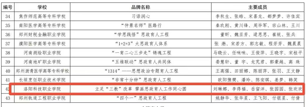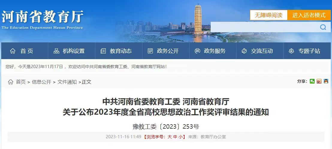 近日,全省高校思想政治工作奖评选结果公示,洛阳科技职业英皇娱乐场