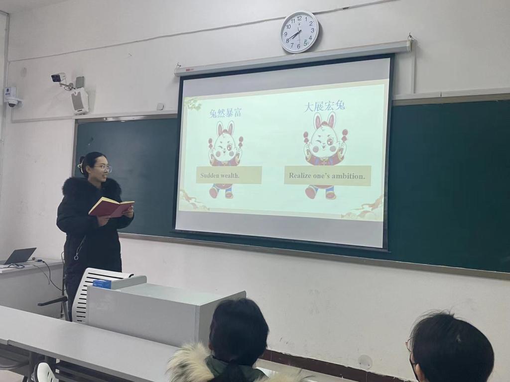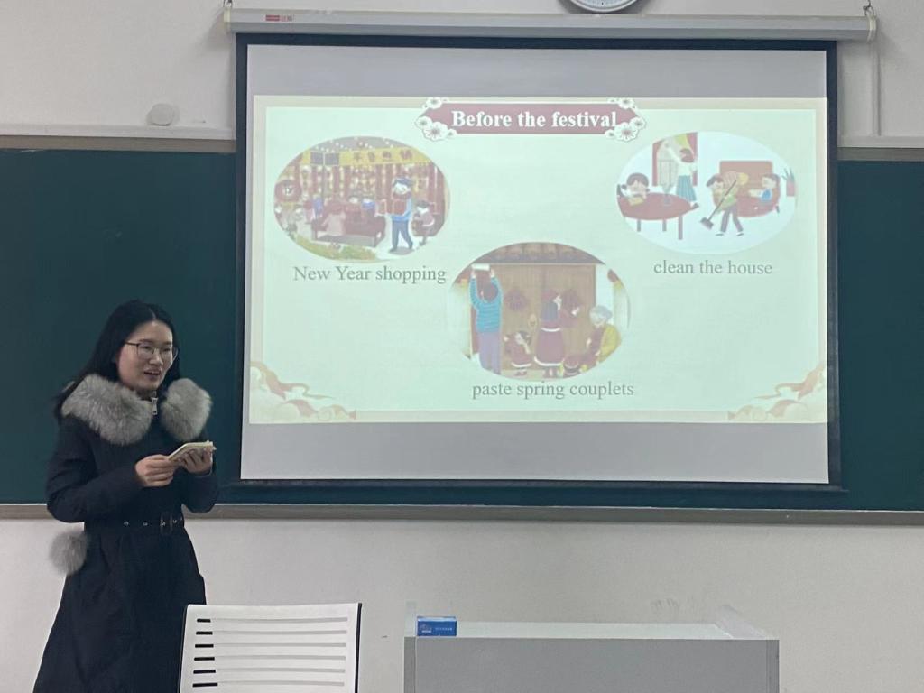 会上,老师们展示了准备的“开学第一课”。杨旋周老师注重挖掘课堂教学内容中的思政元素,把对学生的思政教育有机融入课堂教学,通过不同国家的文化对比,介绍我国作为礼仪之邦的文化积淀,让学生在知识学习的过程中加强文化交际能力的培养。尚果老师注重英语知识的归类和拓展,运用大量的课外材料来丰富和拓宽有限的课堂知识容量。单仕瑜老师在教学中充分利用现代化科学技术,精心设计教学活动来促进学生的知识产出,体现了OBE教学理论在大学课堂的有效应用。老师们从“兔年”开始,用英语讲述了中国的春节,提到了中国独有的春节习俗。从“一道杠”开始,讲述了国家和洛科三年抗疫的成绩,促使学生更加坚定中国特色社会主义道路自信、理论自信、制度自信、文化自信。