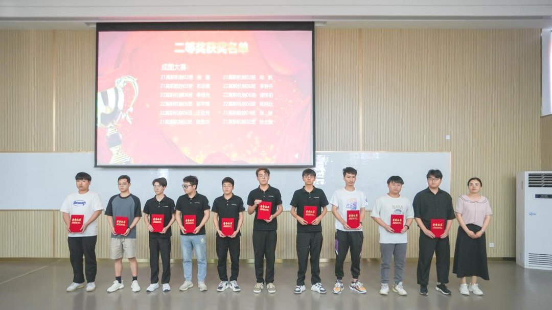 活动中,智能制造工程系主任张诚宣读了在本次校赛中获奖的81位选手名单,与会领导为一、二、三等奖获奖同学颁奖。