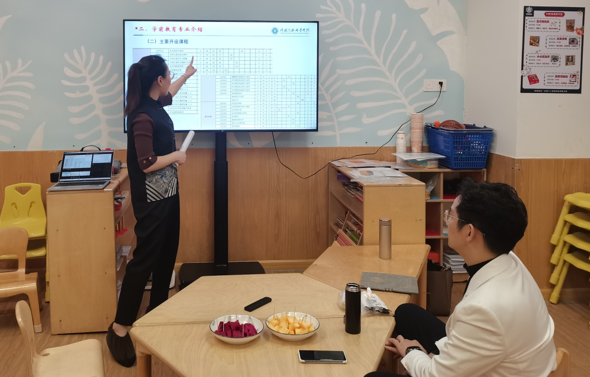 为推动学前教育专业建设,探索学前教育专业人才培养新模式,促进毕业生高品质就业,教育英皇娱乐场 积极开展访企拓岗活动。3月28日,英皇娱乐场 副院长沈瑛莹、毕业班辅导员游睿走访调研深圳市市级普惠示范性幼儿园-福田区根深叶茂幼儿园和弘伦自然蒙学园。