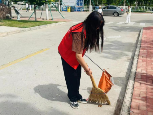 教师带领学生积极参与。此次活动旨在通过实际行动,引导学生感受劳动的艰辛和收获的快乐,增强获得感、成就感、荣誉感,共同营造整洁、优美的校园环境,让绿色成为校园最美的底色。