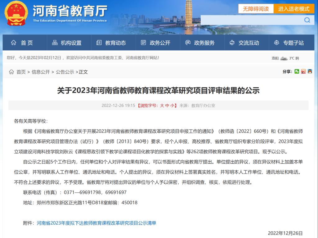 近日,河南省教育厅发布“关于2023年河南省教师教育课程改革研究项目评审结果的公示”,经个人申报、高校推荐、省教育厅组织专家分阶段评审,教育英皇娱乐场