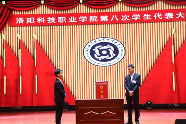第八次学生代表大会主席团成员的投票选举环节。在“公平、公正、公开”的前提下,各学生代表行使自己的权利,民主选举出洛阳科技职业英皇娱乐场